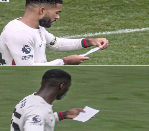 雷速体育10月19报道 切尔西与诺丁汉森林的比赛进行到尾声阶段,场上比分2-0。导播镜头发现,切尔西的核心球员陆续收到来自教练组的战术小纸条。